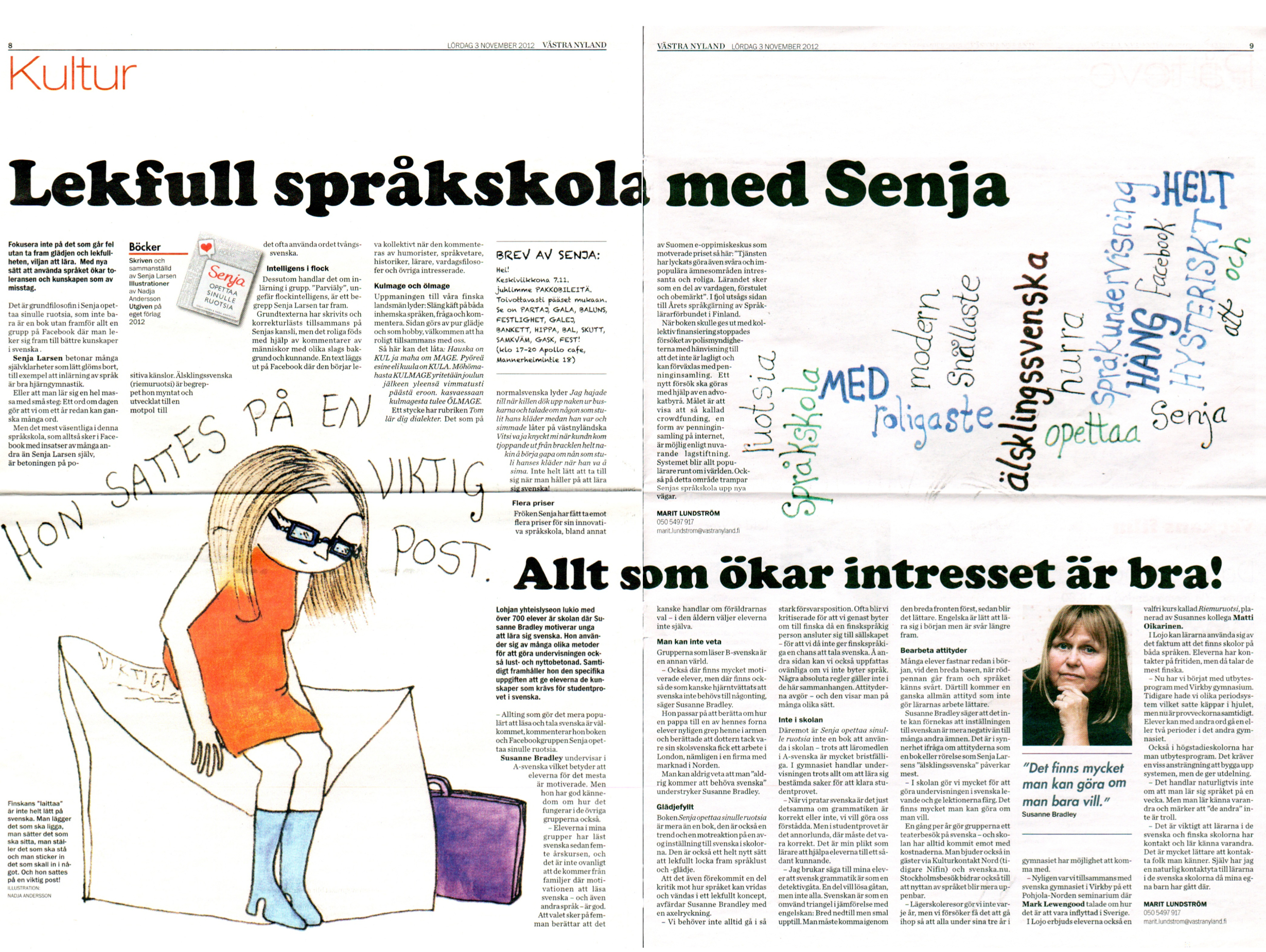 Muutama sana päivässä voisi olla sopiva tahti oppia kieltä ja sosiaalinen media juuri sopiva paikka. Perustin “Senja opettaa sinulle ruotsia” sivun, joka sai vinon pinon palkintoja ja yli 20 000 seuraajaa. Opin valtavasti ruotsia ja yhteisöllisyyttä. Sivusto saattoi olla maailman suurin sosiaalisen median koulu, joka pyöri neljän vuoden ajan nollabudjetilla ja vapaaehtoisvoimin.